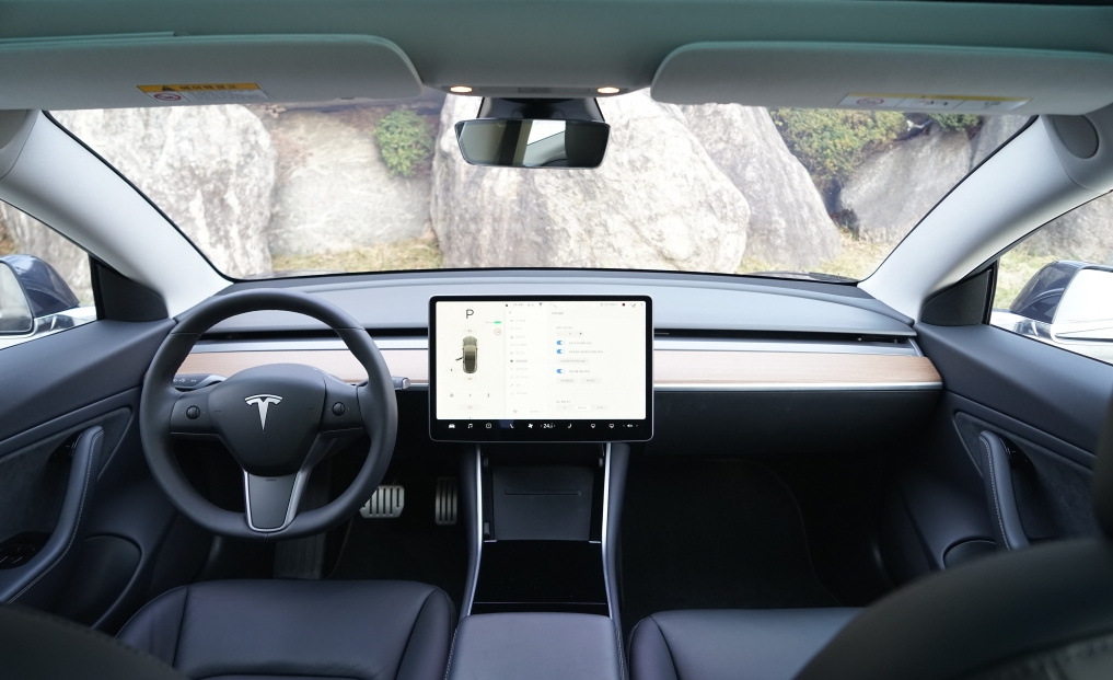 Tesla는 Model 3와 Model Y가 부품의 약 70 %를 공유한다고 한다. 모든 운전 정보는 장착 된 15.0 인치 중앙 터치 스크린으로 볼 수 있다. 화면 아래에는 4 개의 USB 포트와 2 대의 전화기용 도킹이 모두 동일한 레이아웃의 스토리지가 있는 센터 콘솔이 있다. Model Y는 무선 충전 패드가 기본으로 제공된다.