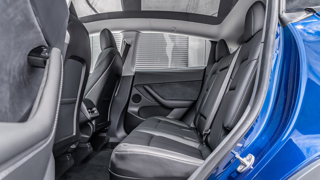 Model Y의 12 방향 전동 조절이 가능한 전면 열선 시트는 Model 3과 동일하지만 좌석의 높이를 올릴 수 있다. Model Y는 Model 3에 비해 약 4cm 더 넓은 헤드룸과 약 13cm의 넓은 레그룸을 가지고 있다.