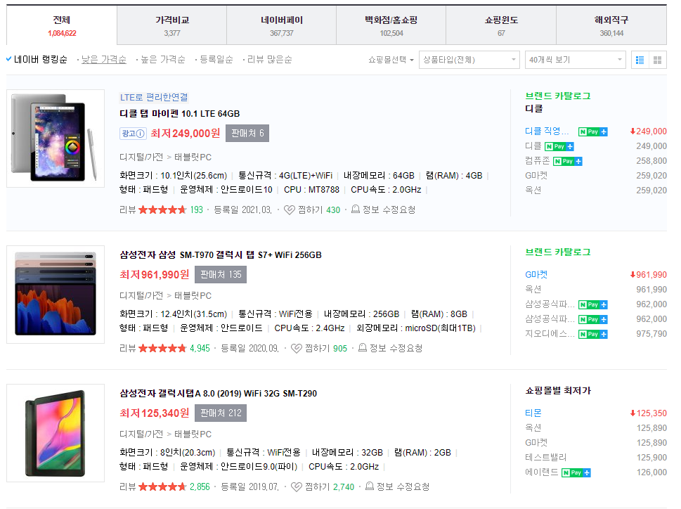 에누리닷컴, 네이버 쇼핑, (다나와) 가격 비교 사이트에서 원하는 물건을 검색하여 가장 저렴한 가격의 물건을 구매하는 것이다. 하지만 요즘은 쿠팡에서 최저가를 내 놓다보니 쿠팡도 같이 검색해야 한다. 가격비교 사이트라고 인터넷의 모든 물건들을 다 찾아주는 건 아닌 듯하다.