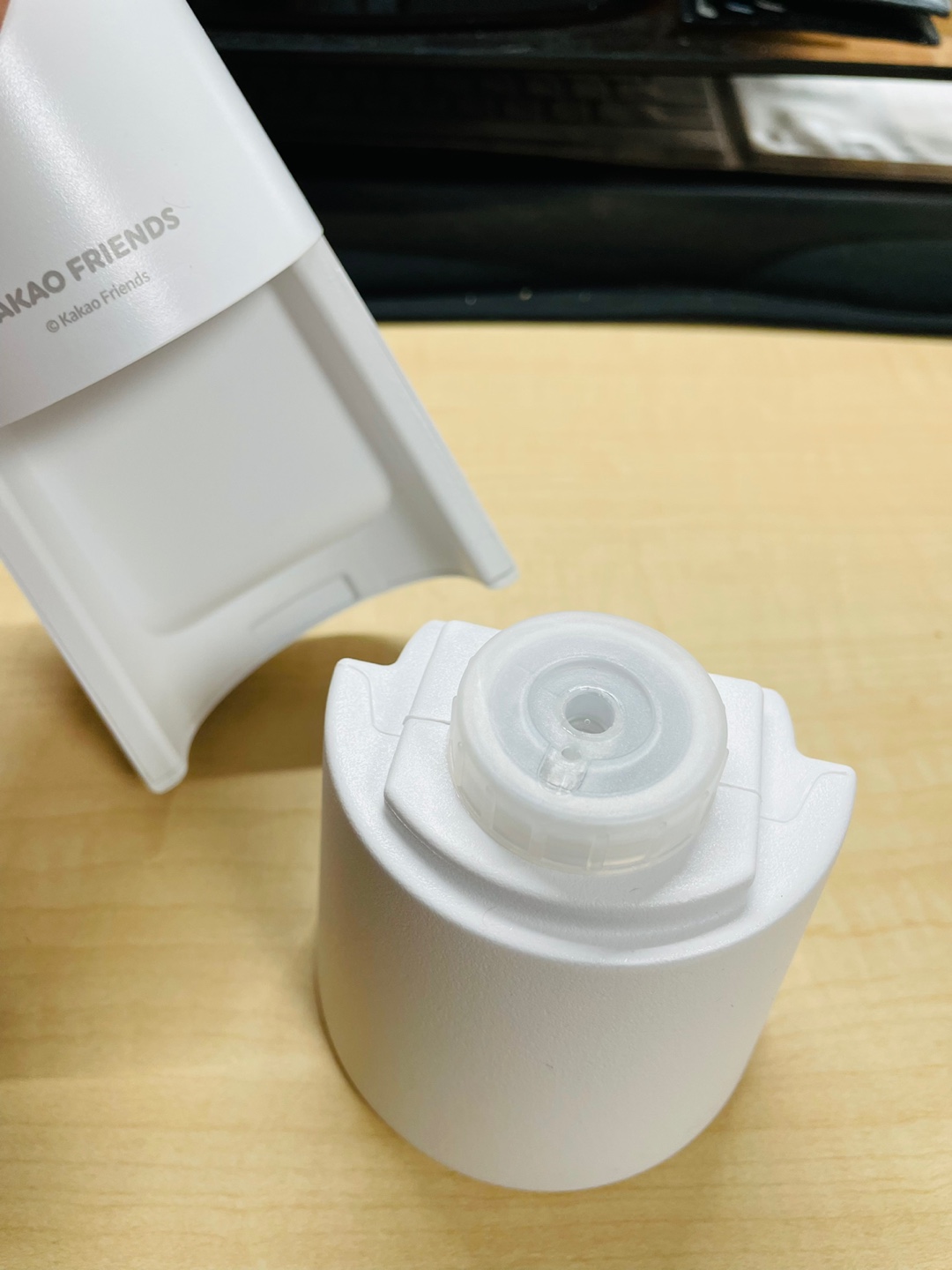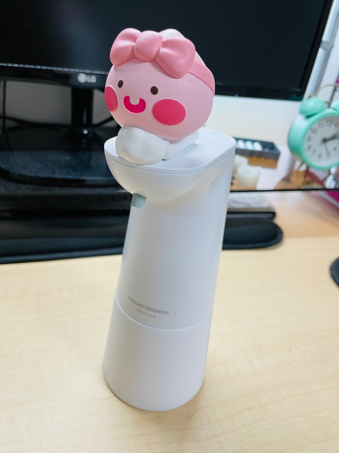 너무나 귀여운 카카오 프렌즈 자동 손세정기이다. 앞에 보이지는 않지만 센서가 달려 있어 손을 갖다 대면 자동을 위에서 거품이 나오는 방식이다.