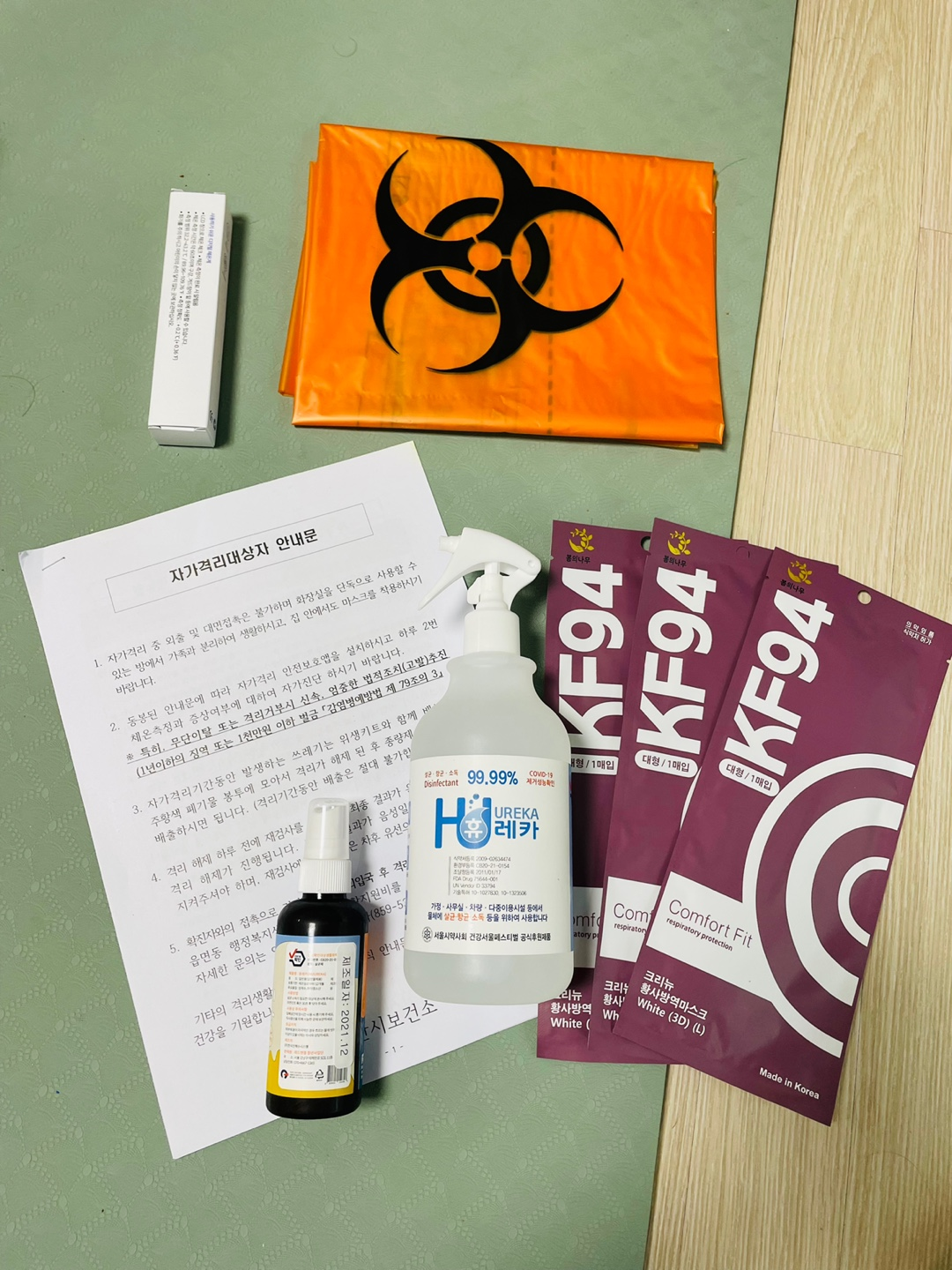 보건소에서 연락이 와서 어플을 설치하고 얼마 후 자가격리 키트가 도착을 하였다.