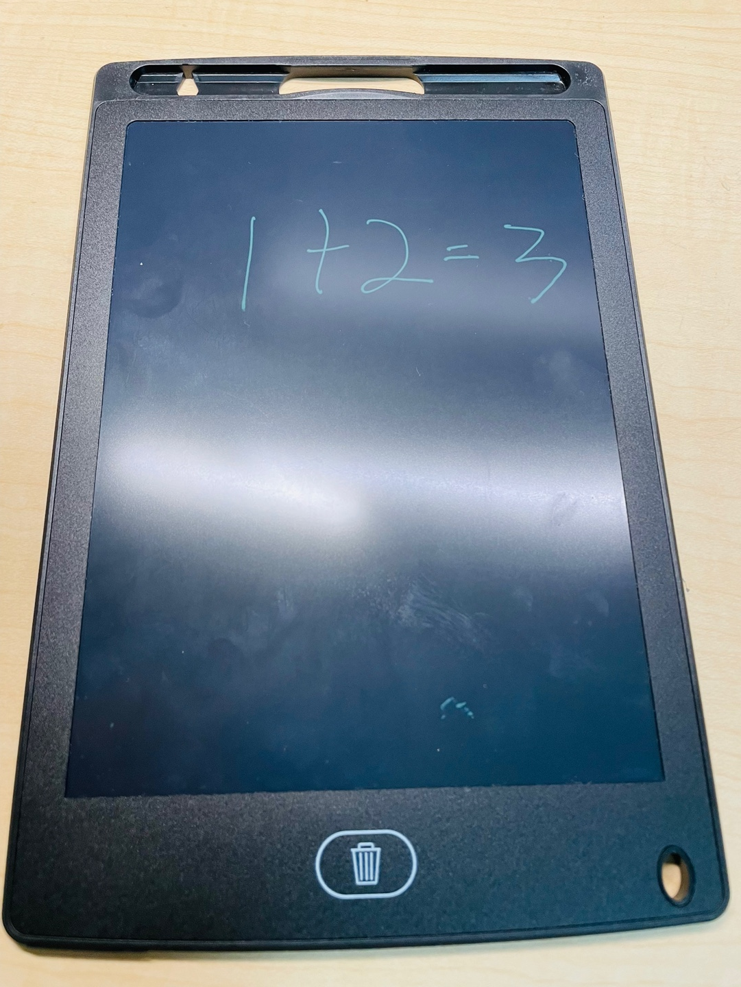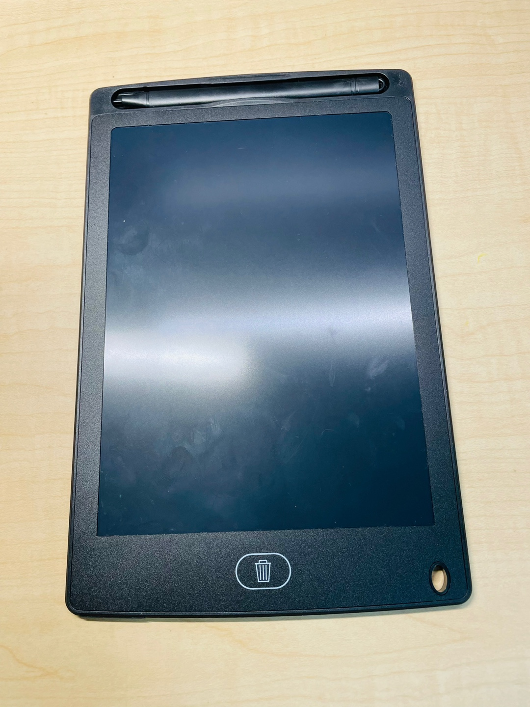 사용법은 간단하였다. 맨 위에 달려 있는 펜으로 적고 아래 휴지통 버튼을 누르면 바로 깔끔하게 지워진다.