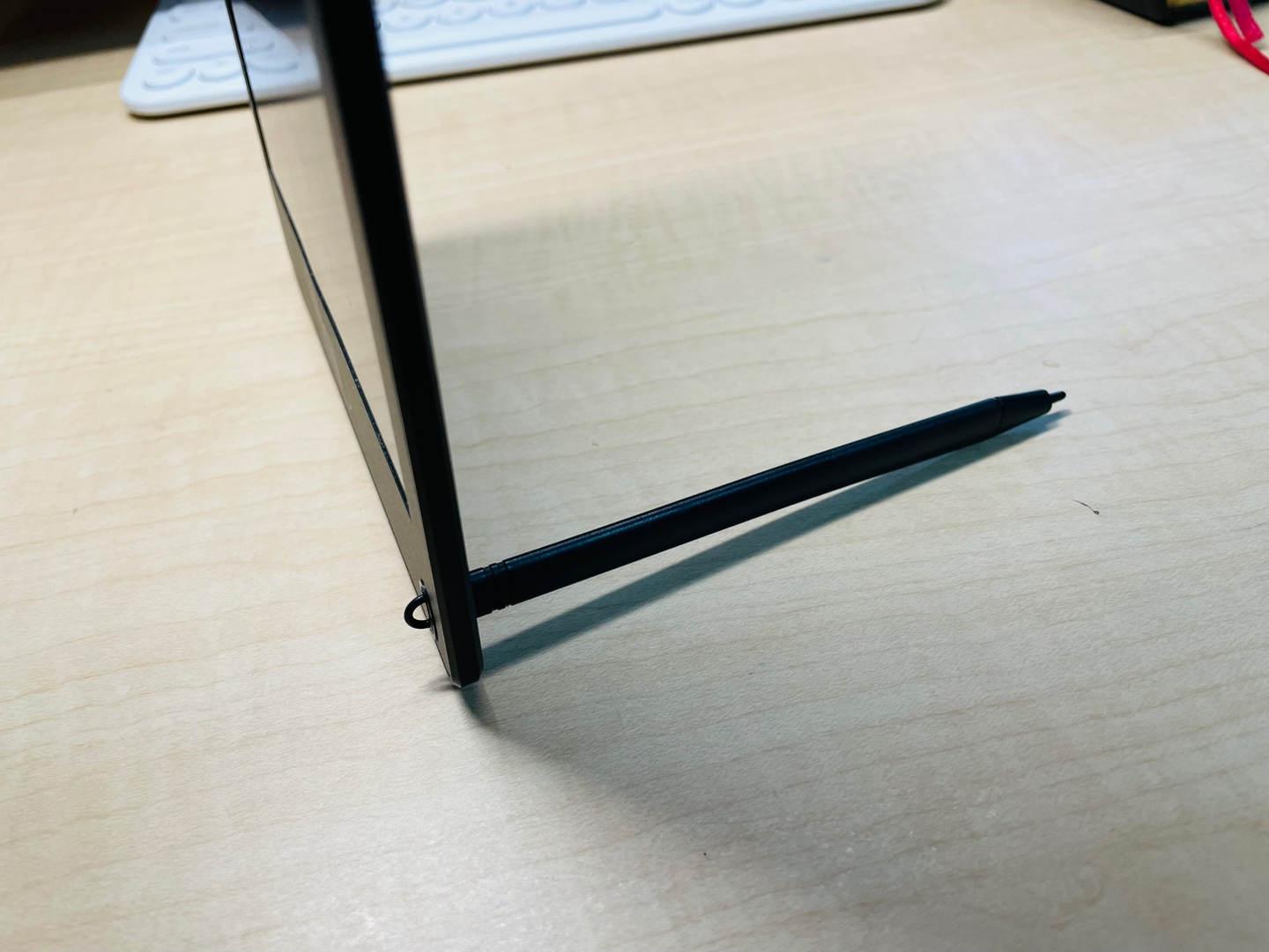 펜은 동그란 모양을 아니고 납작한 모양이다. 간단한 필기를 남기기에는 큰 무리는 없을 것 같다