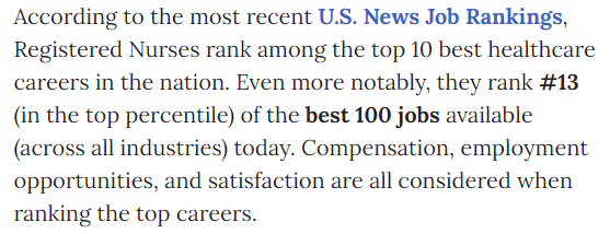 1. 간호사라는 직업은 미국에서 존경받는 직업이다.