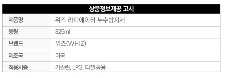 그냥 오픈 마켓에서 '라디에이터 누수', '부동액 누수', 냉각수 누수'라고 쳐사 가장 많이 팔리고 저렴한 제품 하나 사서 넣어주면 된다. 주의할 점은 엉뚱한 곳에 집어넣으면 배보다 배꼽이 더 클 수 있다. 그래서 검색했더니 위즈 메타 씰이라는 제품이 많이 팔리는 것 같았다.