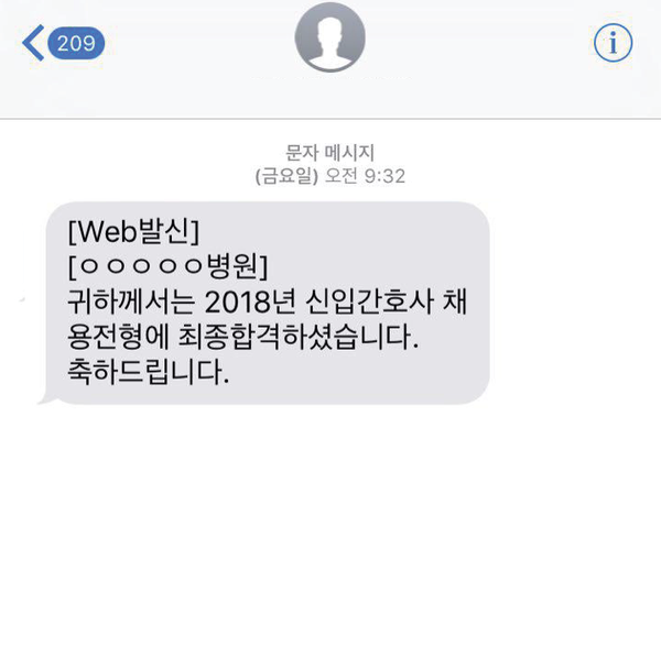 나는 40대 신규 남자 간호사다. 어제 국시 합격했다고 문자가 왔다. 그리고 오늘 면접 본 병원에서 합격 문자가 왔다.