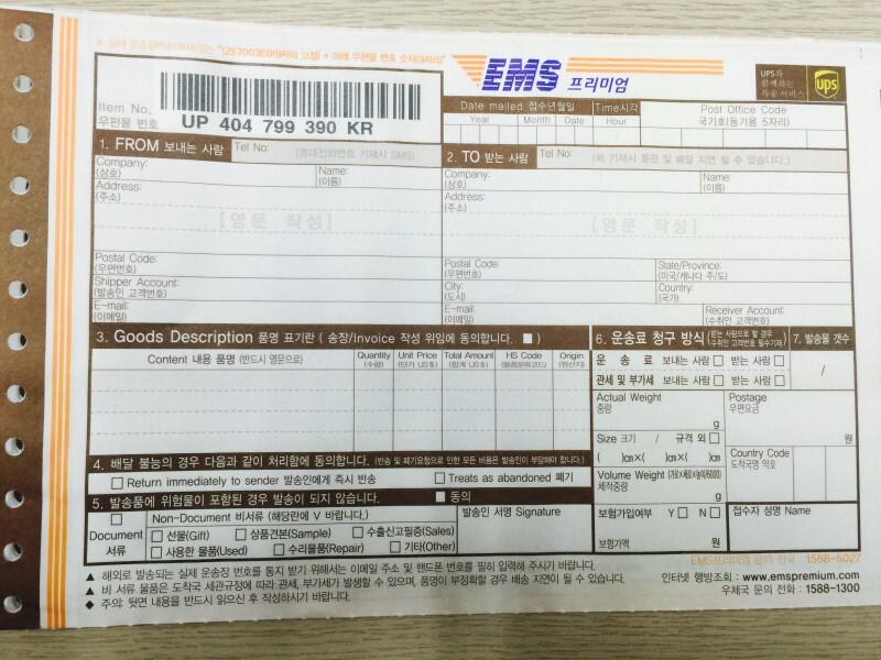 작성법은 간단하다. 위에 1번 2번 보내는 사람과 받는 사람란에 영문으로 기재해 주면 된다.