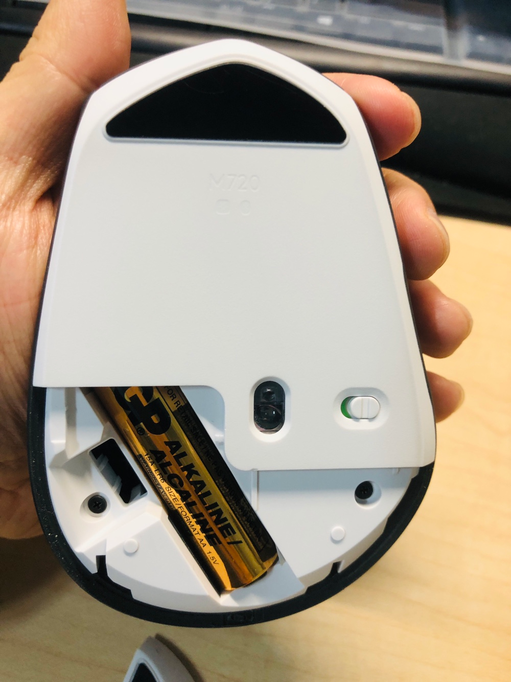 아래를 열면 전용 동글이 들어 있다. 이 제품은 최대 3개 컴퓨터까지 바로바로 블루투스로 연결하여 사용할 수 있다. 컴퓨터를 여러 대 사용하는 사람이라면 참 편리한 기능이다. 왼쪽에 숫자 버튼을 누르기만 하면 번호에 불이 들어오면서 바로 마우스 커서가 이동한다. 하지만 동글에 비해 부팅했을 때 연결되는데 시간이 걸린다. 그래서 나는 그냥 동글을 연결 해서 사용 중이다.