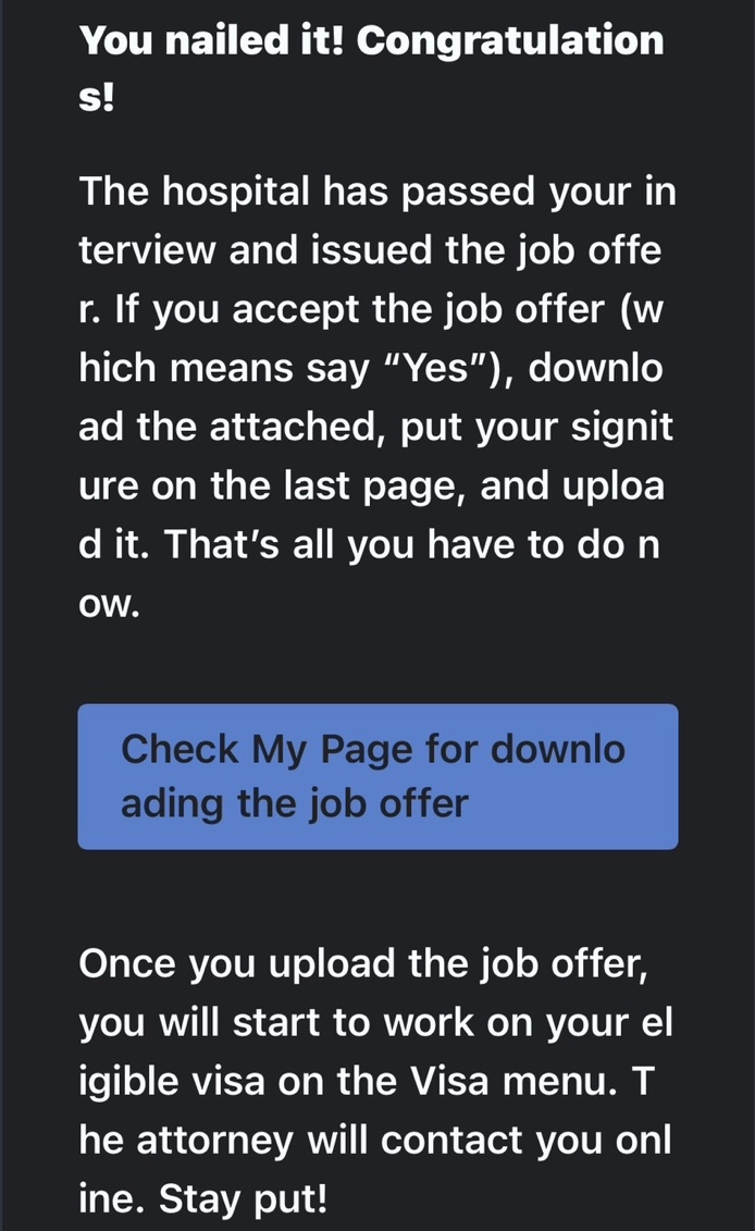 나 정도에 스펙을 가진 외국이 간호사에게 면접의 기회를 준 것 많으로도 여기가 너무 고마웠다. 요양병원 경력이라는 이유로 대부분 에이전시들이 거절하거나 답장도 안 보내주는 곳이 많았기 때문이다. 한국말로 카톡으로 질문도 가능했고 답변도 빠르다. 상당히 체계적이라는 느낌이 들었다. 면접을 잡아주겠다는 이곳 에이전시 답변에 나의 질문은 "요양병원이나 요양원 경력으로도 미국 병원에 갈 수 있을까요?"라는 것이었다. 답변은 "가능해요. 이전에 요양원 경력으로도 계약한 분이 계세요"라는 답변이었다. 그래서 작은 희망이라도 가지고 진행을 했던 것이다. (인터뷰 후기는 나중에 올리도록 하겠다.)