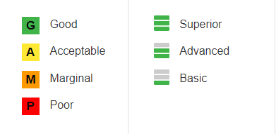 - 전면의 작은 오버랩, 전면과 머리 받침대의 중간 오버랩 정격은 유사한 중량의 차량 사이에서만 비교해야 한다. 측면, 지붕 강도, 전면 충돌 방지, 전조등 및 래치 정격은 차량 범주에서 비교할 수 있다.