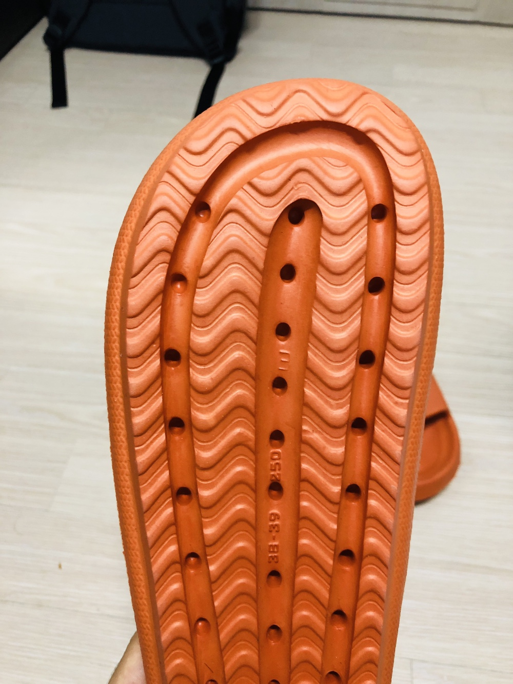다소 화장실 슬리퍼 느낌이 난다. 바닥 두께는 4cm정도 된다. 착용감은 너무 푹신하지도 않고 너무 딱딱하지도 않게 적당한 쿠션감에 착용감이 상당히 편하다. 역시 많이 팔린 데는 이유가 있는 듯하다.