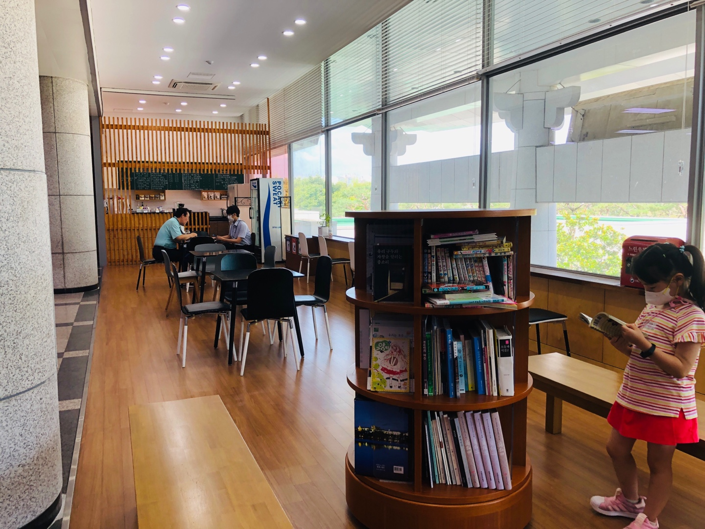 무엇보다도 에어컨이 빵빵해서 무더위에 박캉스(박물관 + 바캉스)로 가서 쉬다와도 좋을 것 같다. 꼭대기 층에는 작은 카페가 있고 앉아서 쉬면서 책을 읽을 수 있는 공간이 있다. 여기서 바라보는 창 밖에 풍경도 꽤 멋지다.