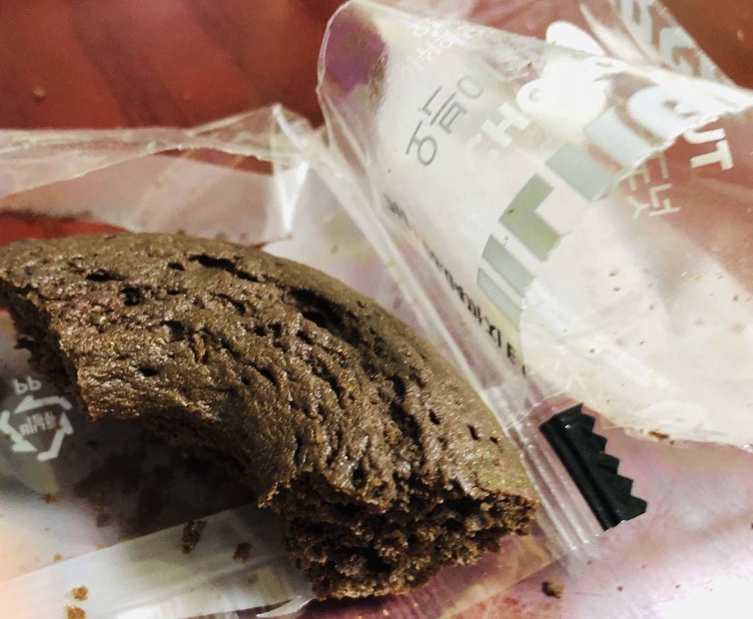그래서 집에 오자마자 먹어보았다. 그런데... 퍽퍽하고 초코맛은 안난다. 그냥 겉도 퍽퍽 안도 퍽퍽한 오븐에 구운 도넛이다. 못 먹을 맛은 아닌데 역시 오리지널이 최고다. 나도 혹시 몰라 구매 전에 다른 블로그 검색해서 구매한 건데.... 당했다.